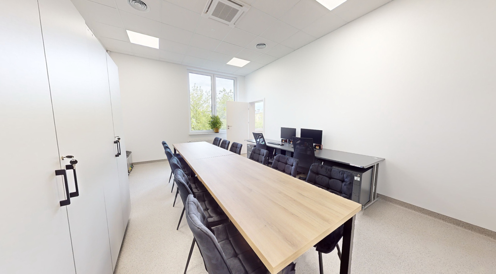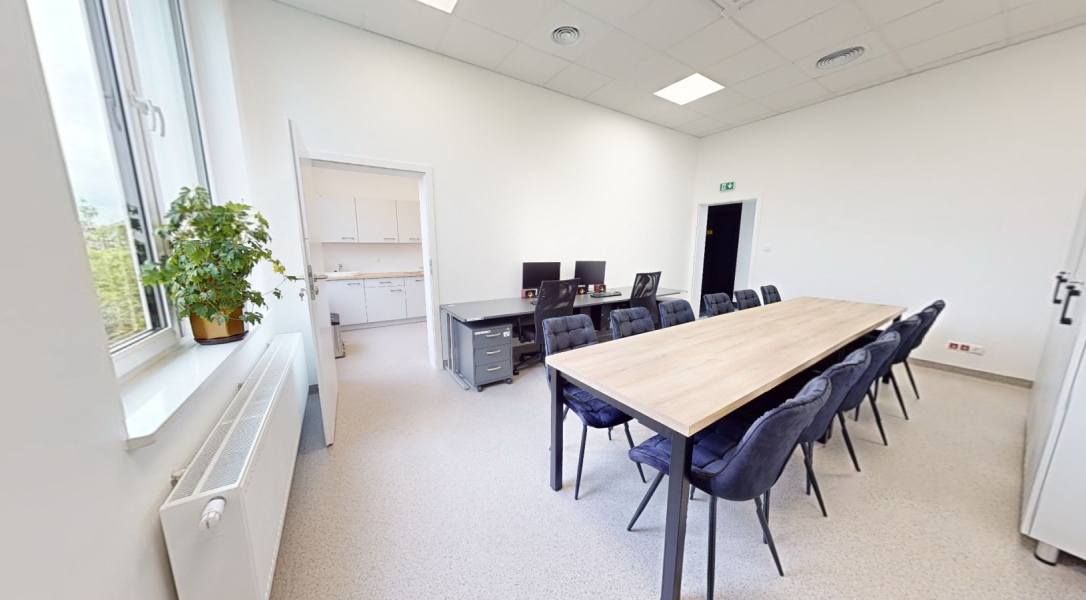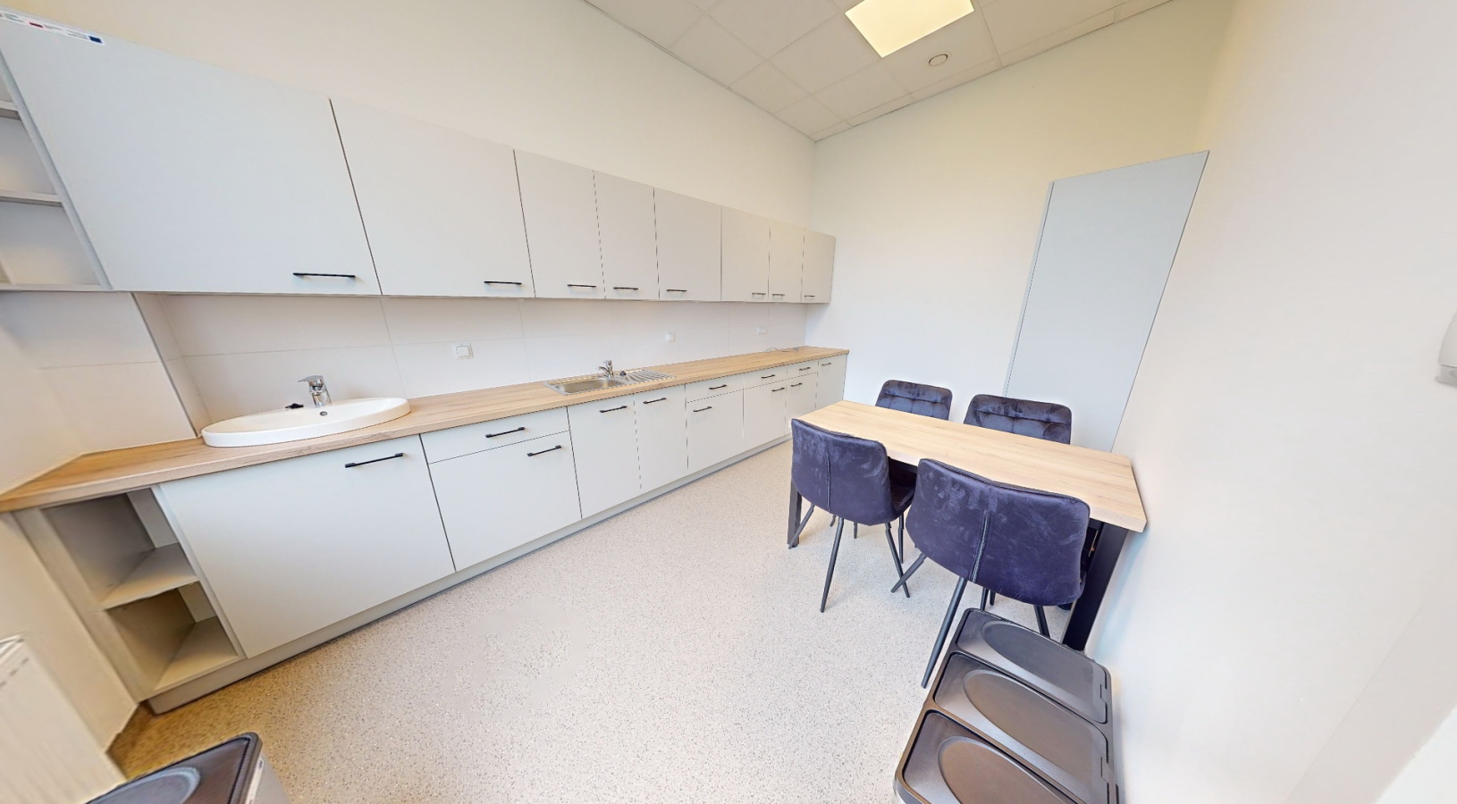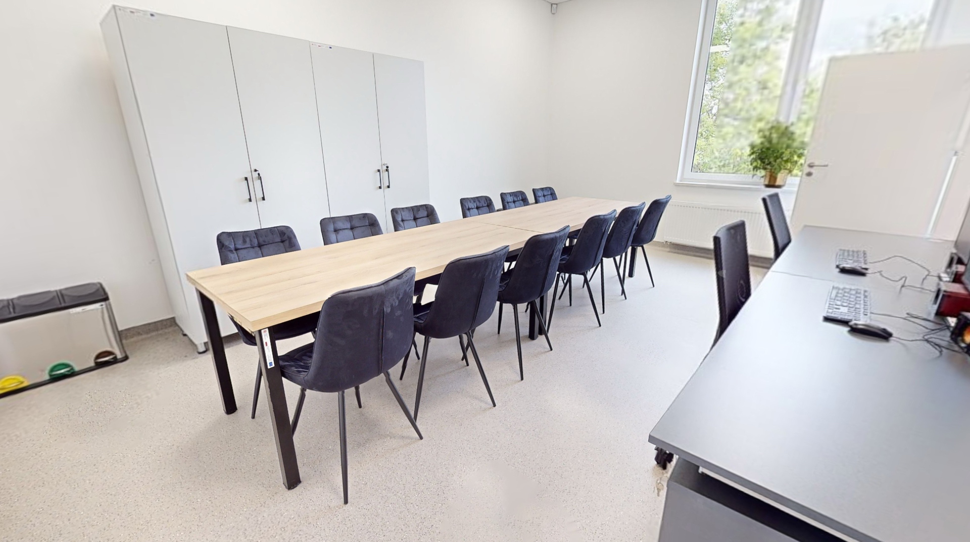 Pomieszczenie wyposażone jest w ergonomiczne stanowiska pracy, dostęp do szybkiego Internetu, urządzenia wielofunkcyjne oraz niezbędne materiały biurowe. Stwarza to optymalne warunki do przygotowywania scenariuszy zajęć, prowadzenia konsultacji, analiz dokumentacji oraz planowania procesów dydaktycznych i szkoleniowych. Przestrzeń zapewnia również miejsce do odpoczynku i regeneracji pomiędzy zajęciami.