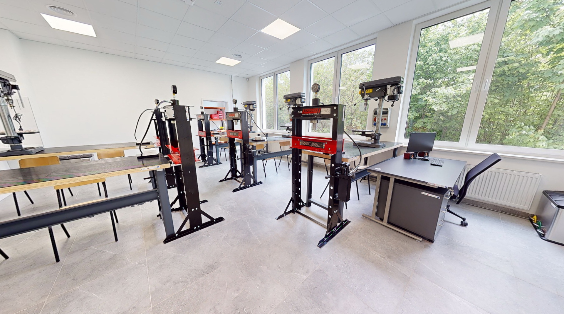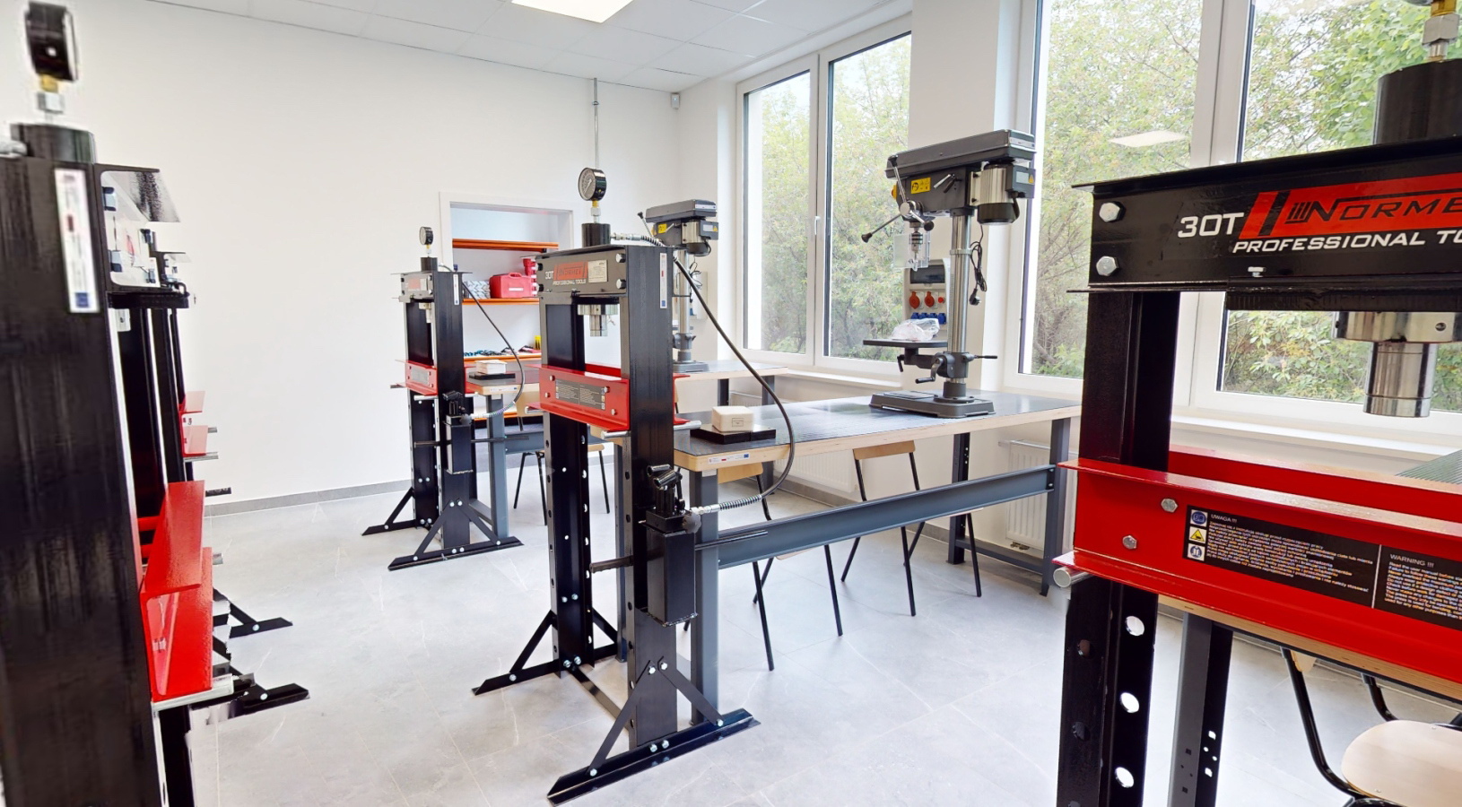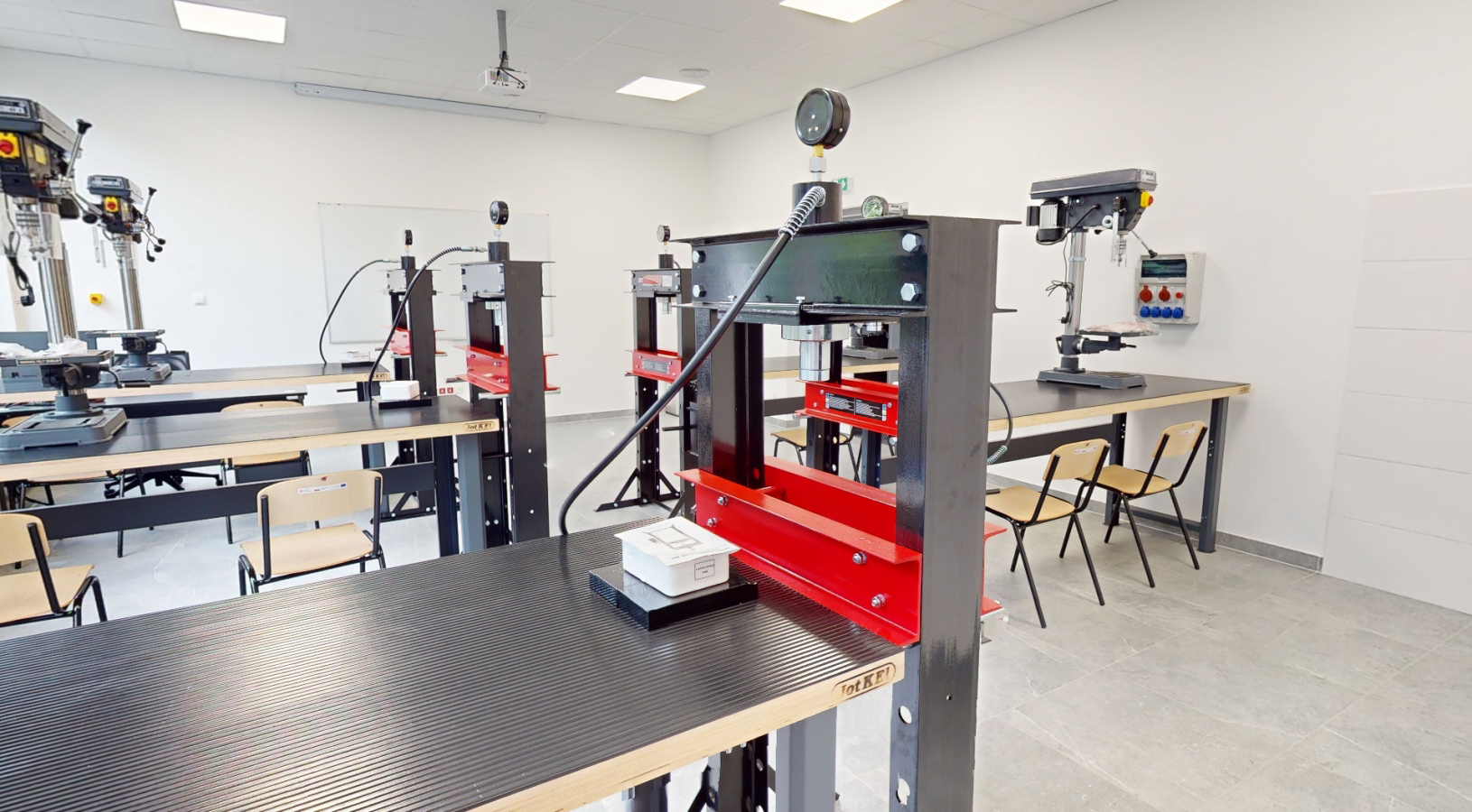 Pracownie wyposażone są w nowoczesne stanowiska, sprzęt pomiarowy, urządzenia szkoleniowe oraz technologie IT, które odpowiadają wymaganiom rynku kolejowego i edukacji branżowej. To przestrzeń, w której teoria łączy się z praktyką, a uczniowie, kursanci i profesjonaliści mogą rozwijać się w dynamicznym, nowoczesnym środowisku sprzyjającym innowacjom i współpracy.