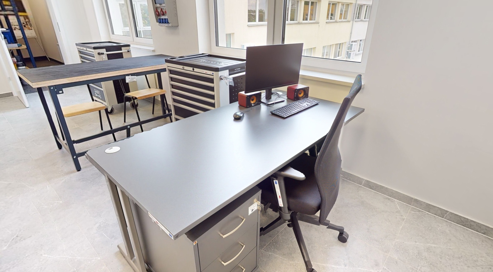 Pomieszczenie wyposażone jest w ergonomiczne stanowiska pracy, dostęp do szybkiego Internetu, urządzenia wielofunkcyjne oraz niezbędne materiały biurowe.