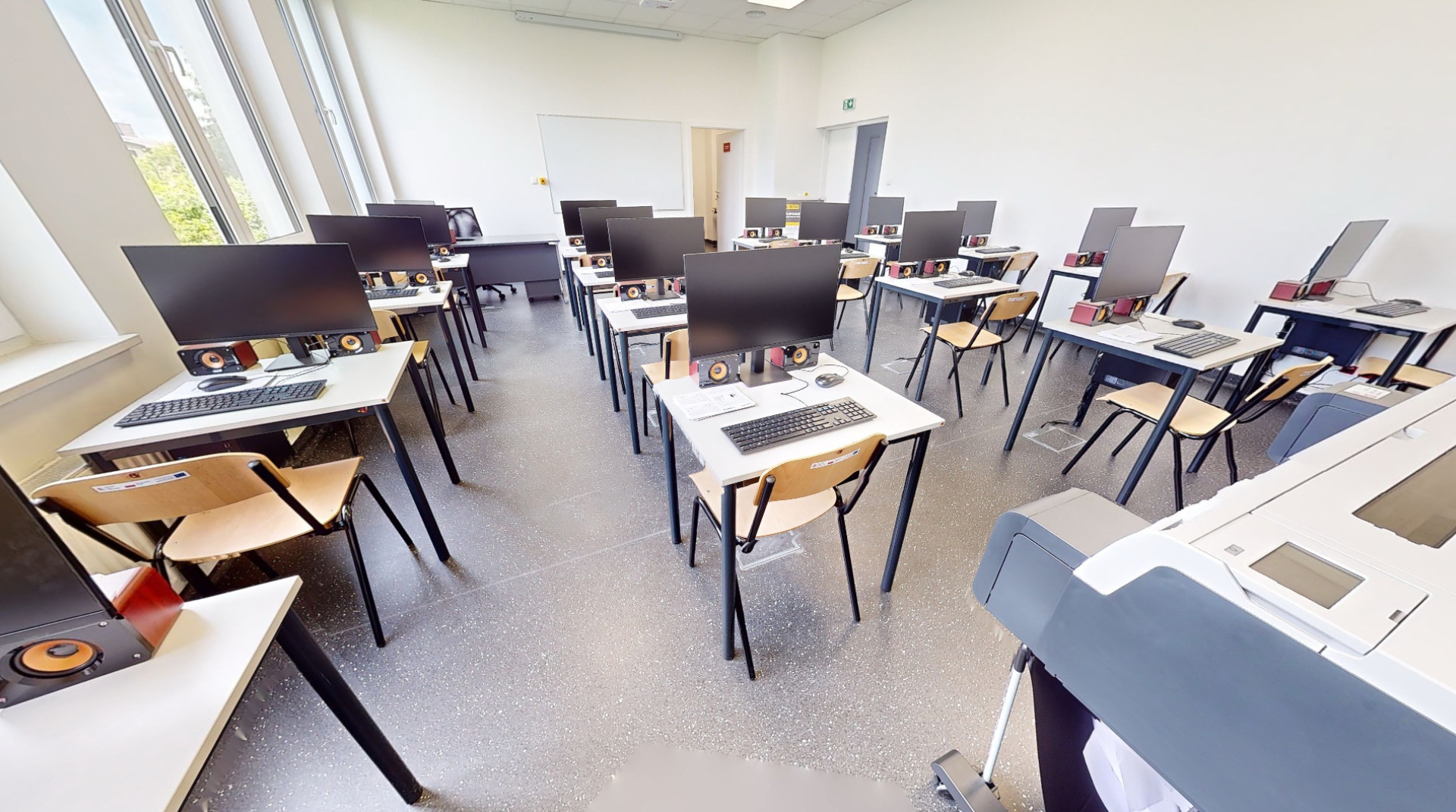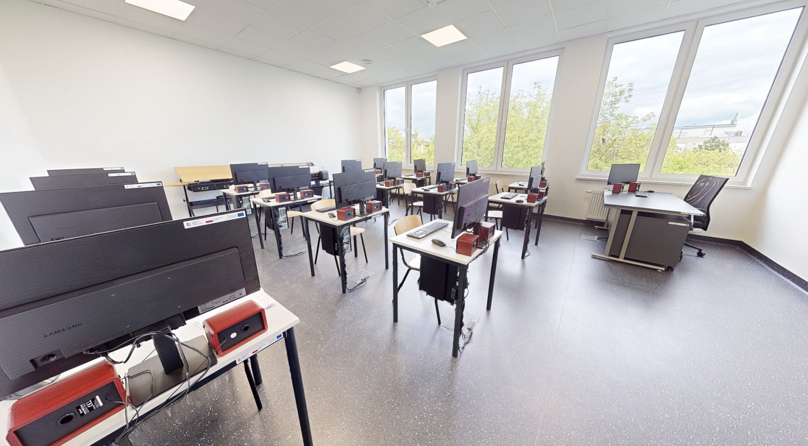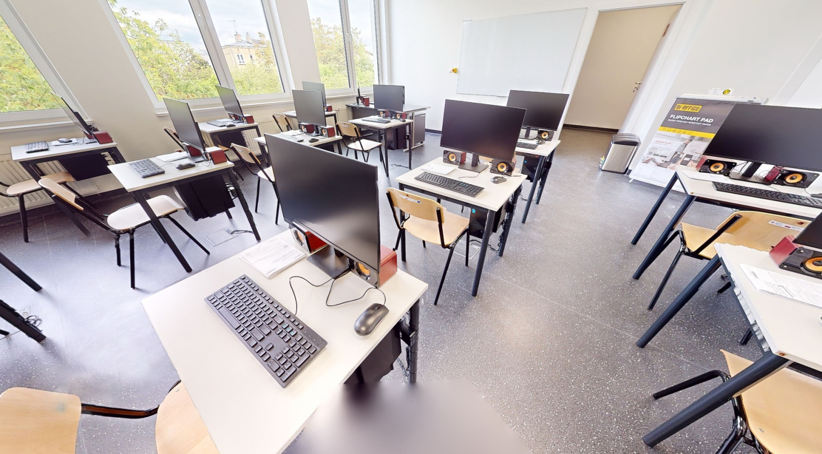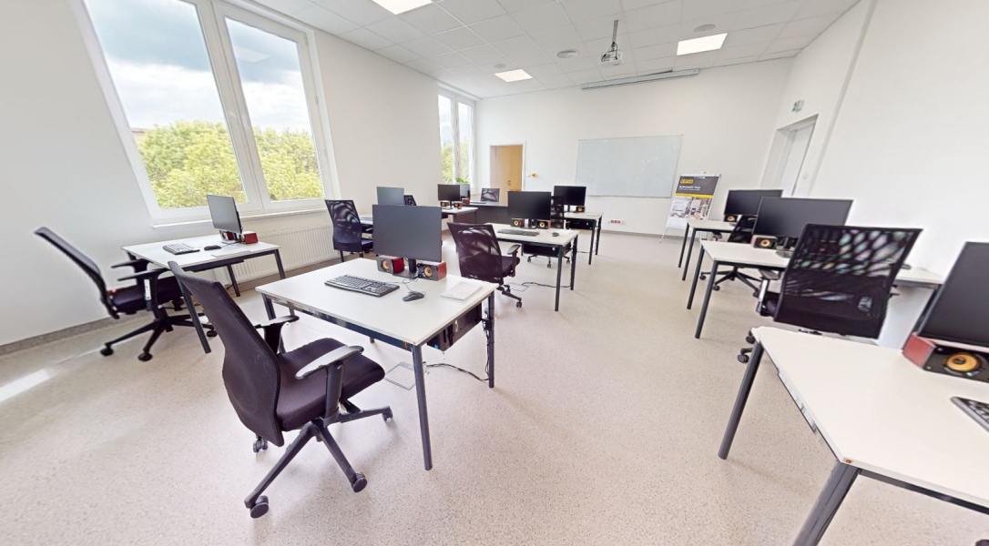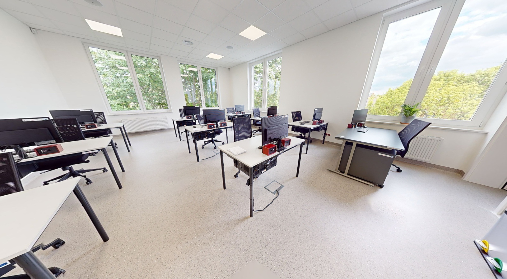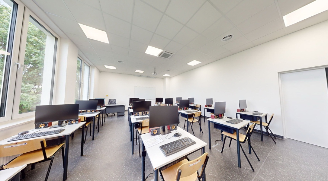 Nowoczesna infrastruktura informatyczna umożliwia także realizację kursów e-learningowych, szkoleń zdalnych oraz pracy projektowej w grupach. Pracownia komputerowa wspiera rozwój kompetencji cyfrowych, analitycznych i inżynierskich, które są kluczowe w nowoczesnym transporcie szynowym.